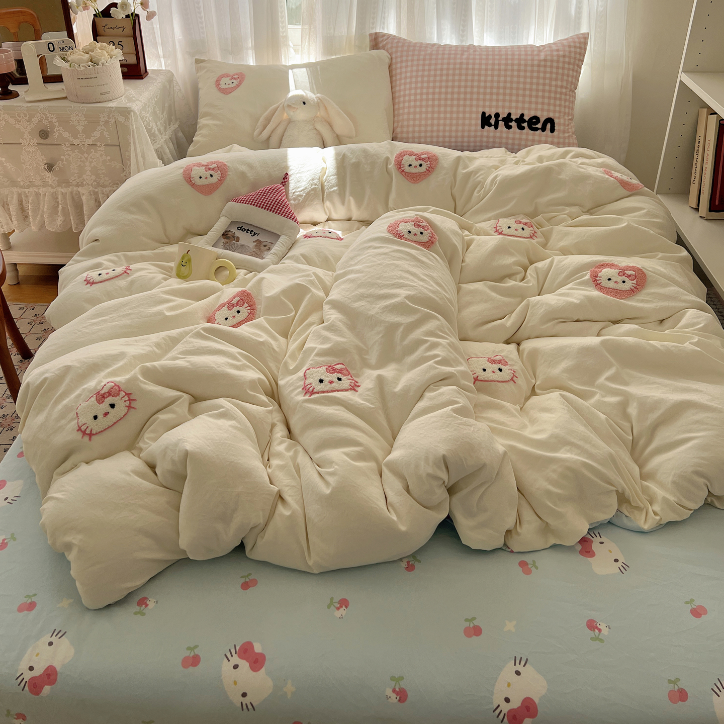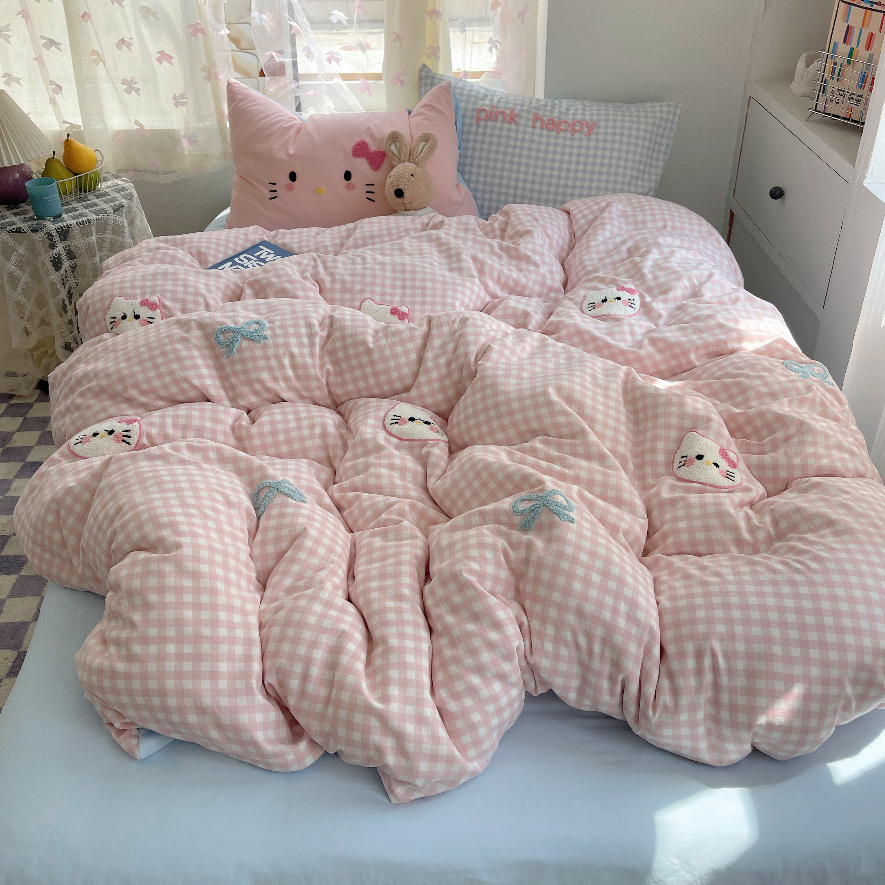 > ins床上四件套纯棉全棉2025新款kt猫被套床单被罩学生宿舍三件套3