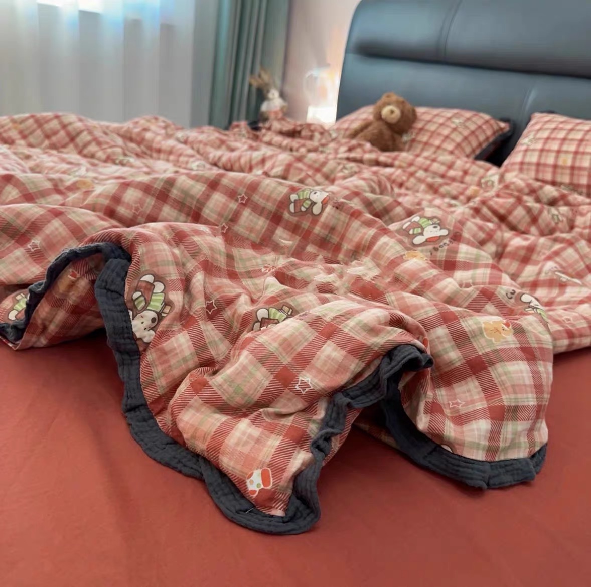 A类床上四件套纯棉全棉2025新款复古格子被套床单学生宿舍三件套3